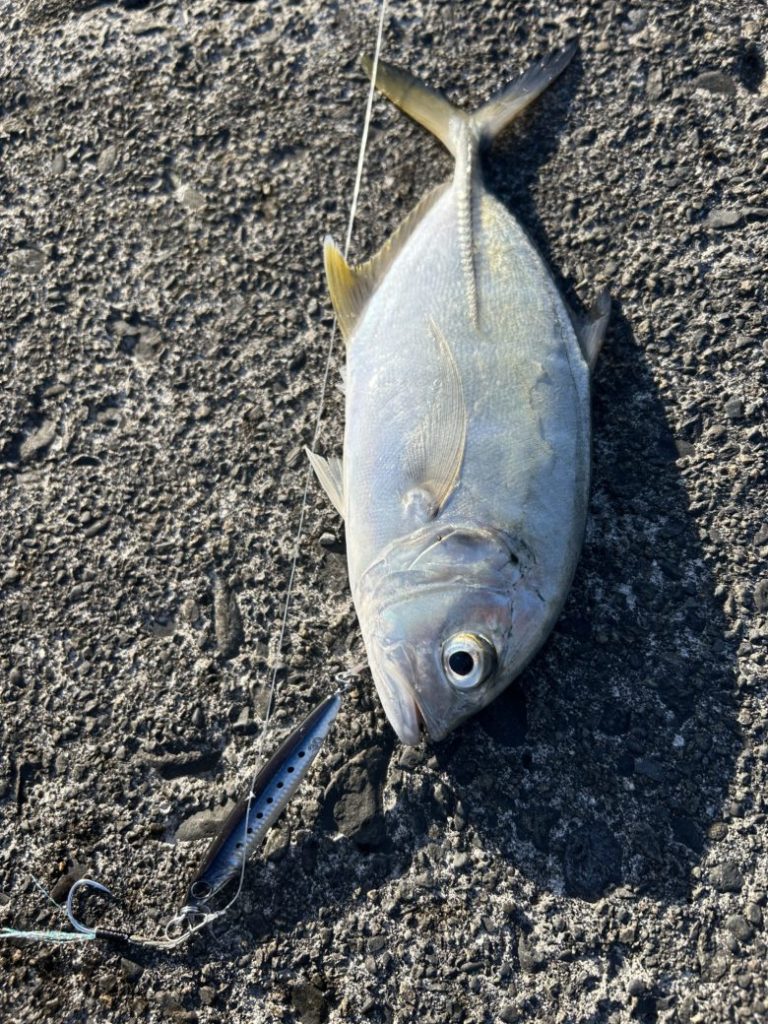沖のほうにキャストしてもまったく反応がなかったので、おそらくベイトが接岸するタイミングで防波堤に追い込んで捕食する”居つき”この近辺で回遊している魚じゃないかと思う。