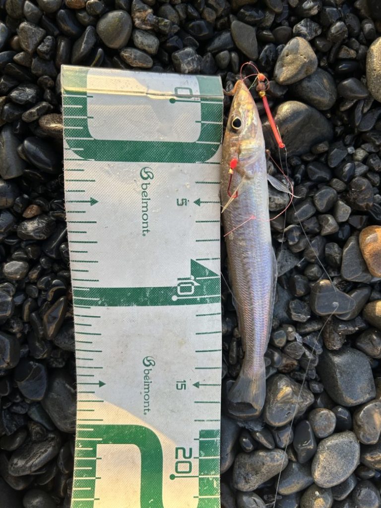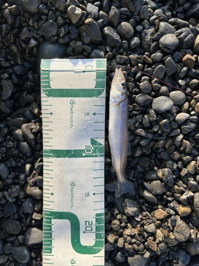 普段なら青物がより安いポイントに入ったつもりだったが・・・とりあえず消波ブロックが突き出ていることで発生した地形変化を狙って、Rサーディンで丁寧にボトムを探る事でかわいいソゲをゲット。