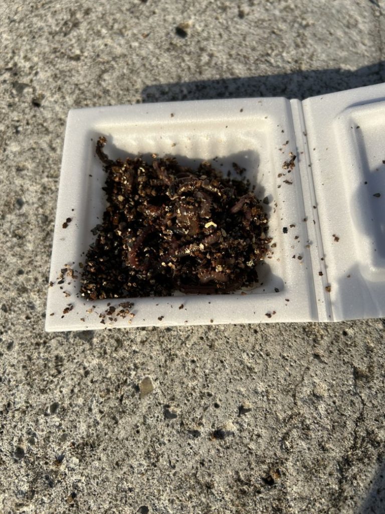 エサは青イソメより少し小ぶりな赤イソメ。