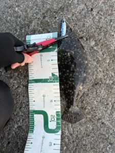 ⑤釣った魚は、メジャーと合わせて写真を撮る
